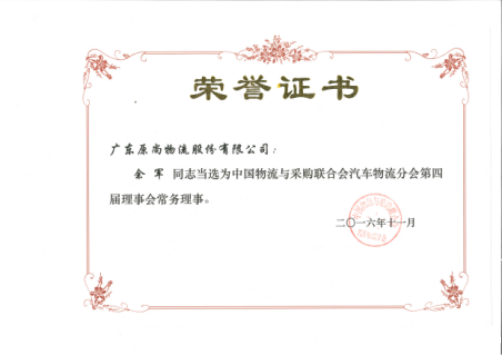 余军董事长获选中国物流与采购联合会汽车物流分会常务理事